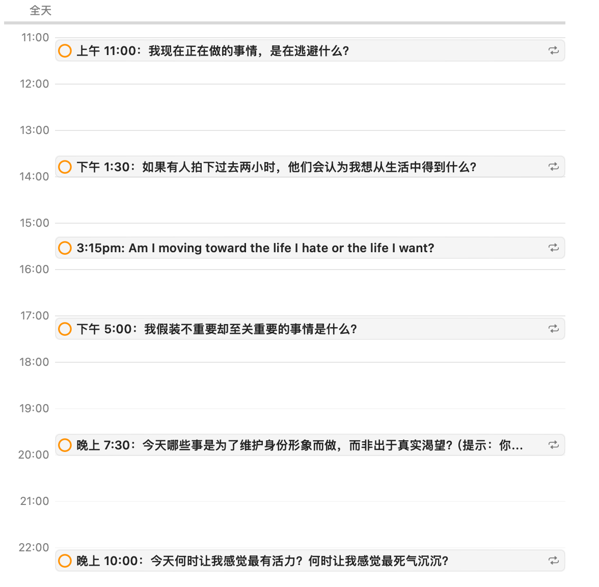 【这个真的很有意思,把反思变成日程,建议你也试试,定个每天重复的提醒日程】