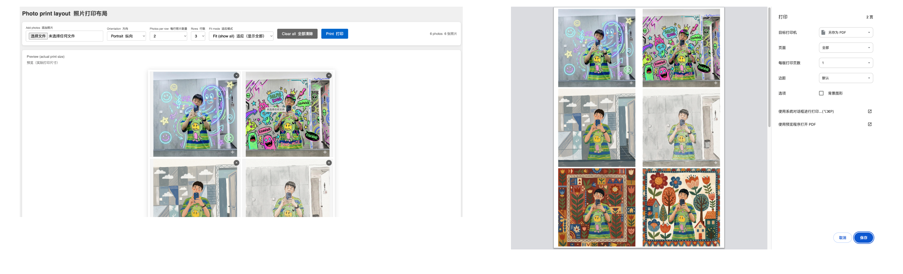 这个就是为了A4纸打印照片,帮你自动布局照片位置。你还别说,这还真挺好用的。