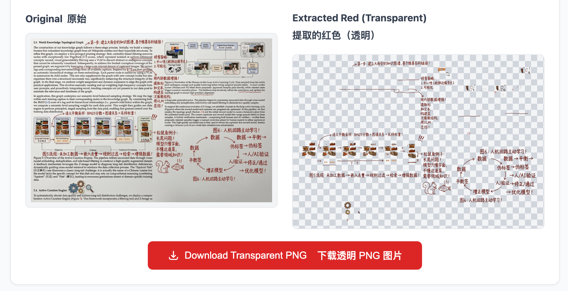 这就是字面意思,提取红色批注。看介绍,应该是用Gemini在图片上生成了红色批注,但是不想要Gemini的星星水印。所以做了一个红色批注提取,再叠加回原图的工具。