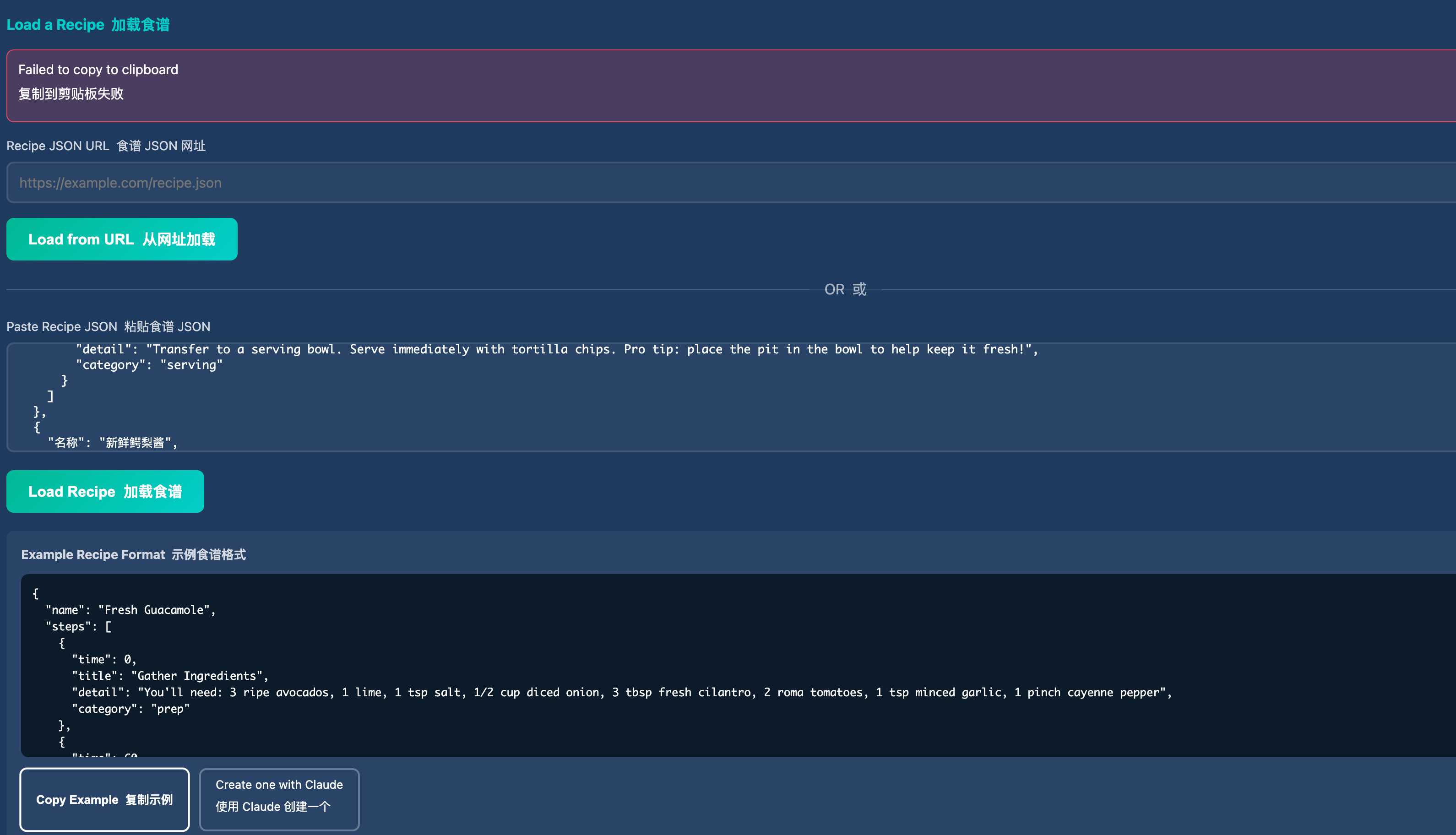 唯一的问题是,你想用这个计时器,你还得先把你的菜谱写成JSON的形式。