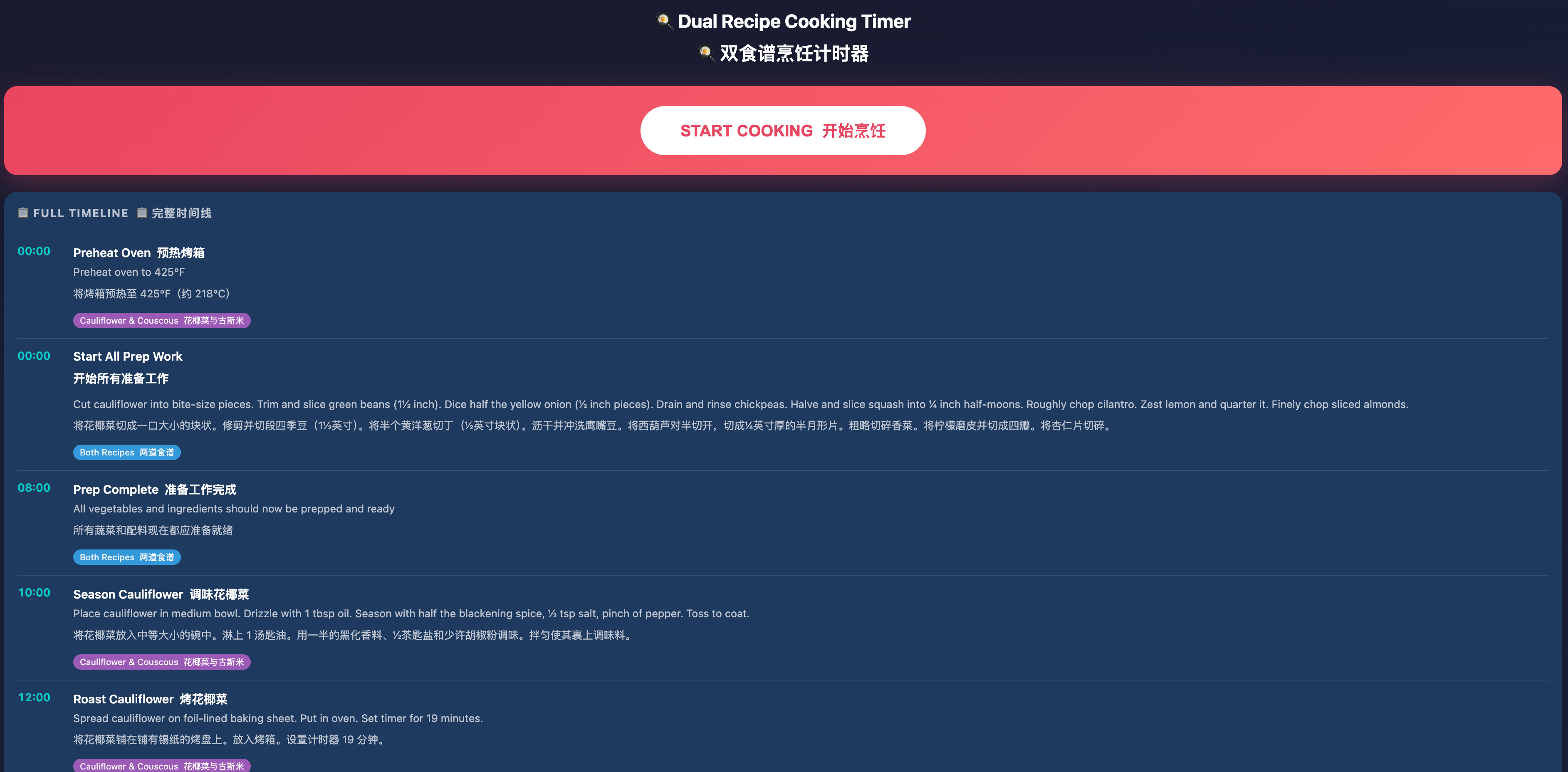 就是帮你把菜谱里的时间,变成拆解步骤,按照从开始到完成的时间倒计时的工具。
