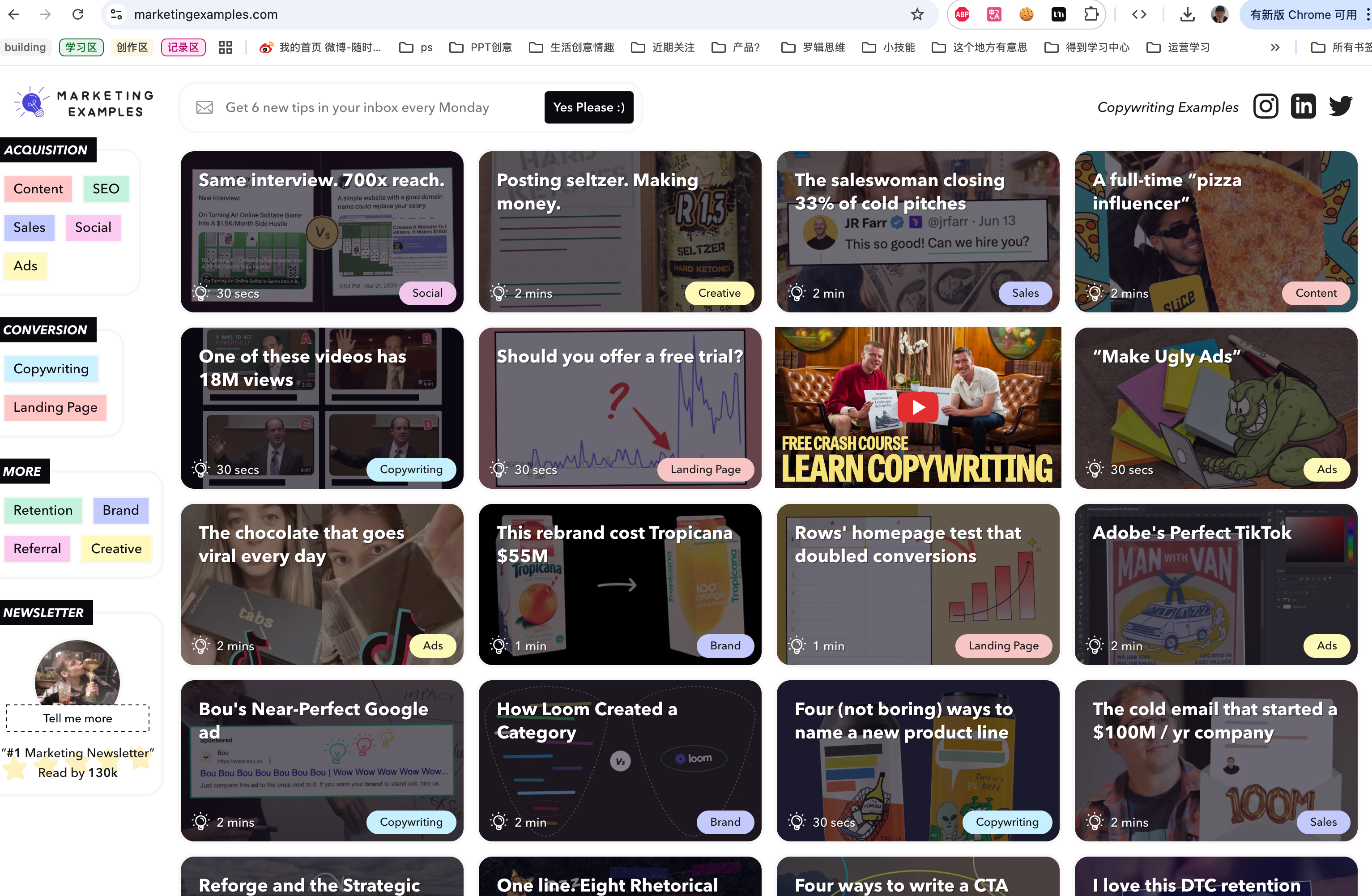我搜索了两个领域,一个是【增长黑客】,一个是【网球学习】。