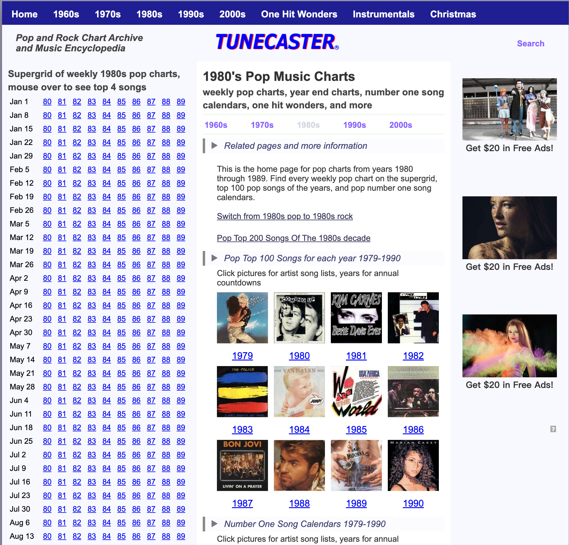 世界上就有这么一个地方,收录了从上世纪60年代到本世纪00年代的所有Billboard榜单。