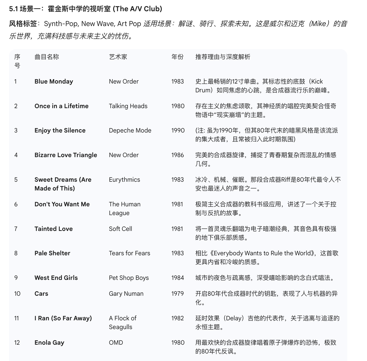 也顺便把《怪奇物语》的五季配乐合集歌单发你。(这个不是我做的,但是我觉得整理最完整的,非常全)
