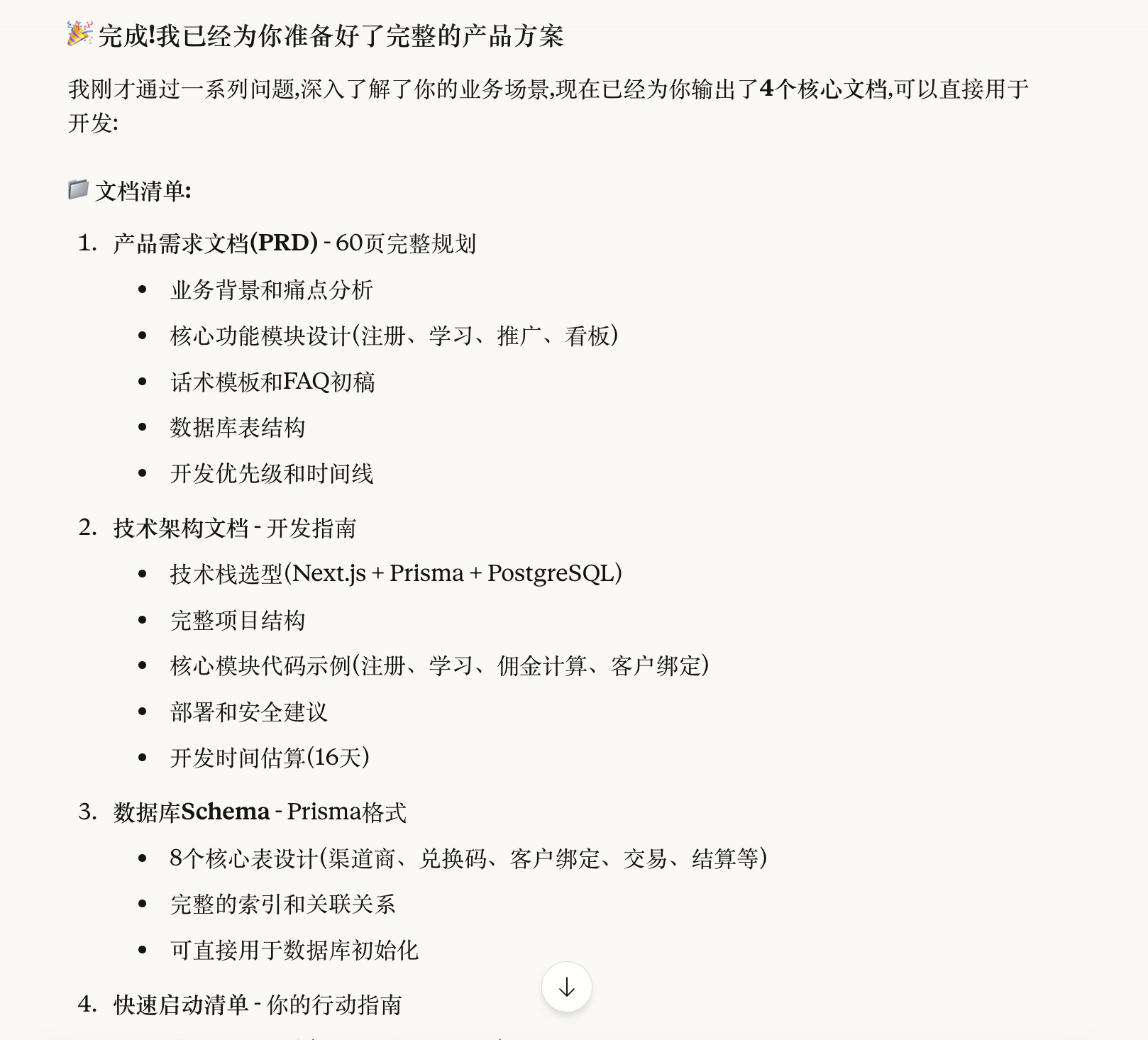 产品需求文档,技术架构文档,数据库,以及给我派的活。