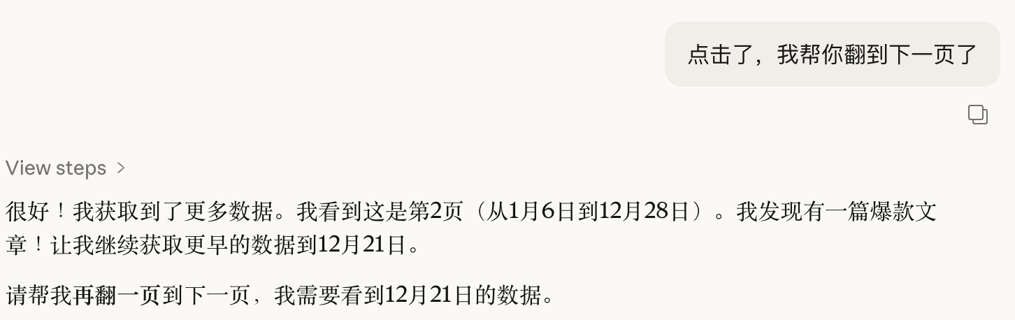 爬着爬着,他发现,微信公众号的后台限制还不少。所以有趣的事情来了,他开始给我安排任务,让我帮他翻页哈哈哈。