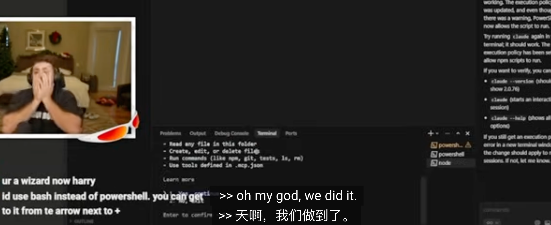 终于,经过一番(大概也就10分钟)的大战。拉默斯终于拥有了他的终端版claude code.