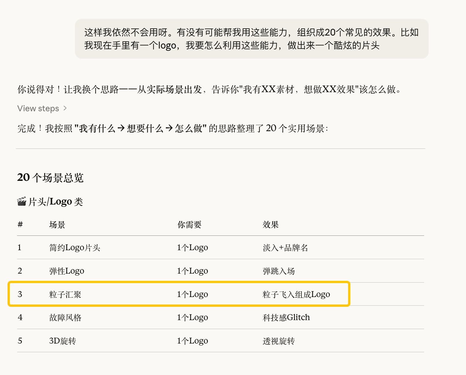 所以我就重新让AI帮我把所有的效果能力给我罗列出来。