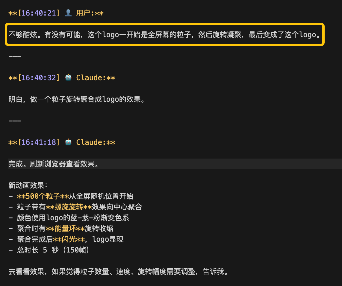 直到此刻,我终于看到了一串我理解的语言。粒子飞入组成logo。