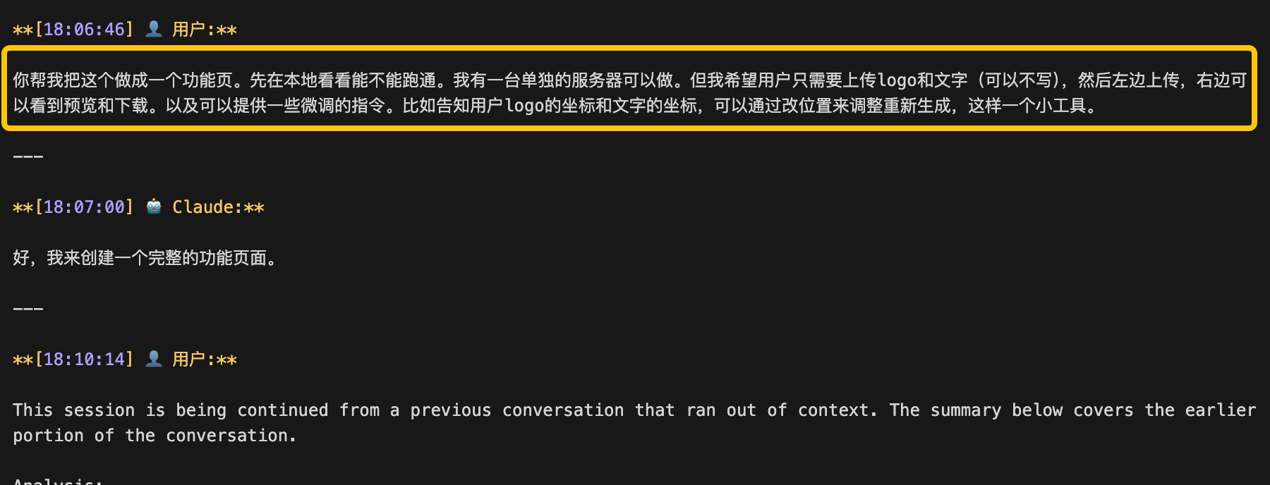 是的,逐步,连跟AI说了什么话,都原封在那。