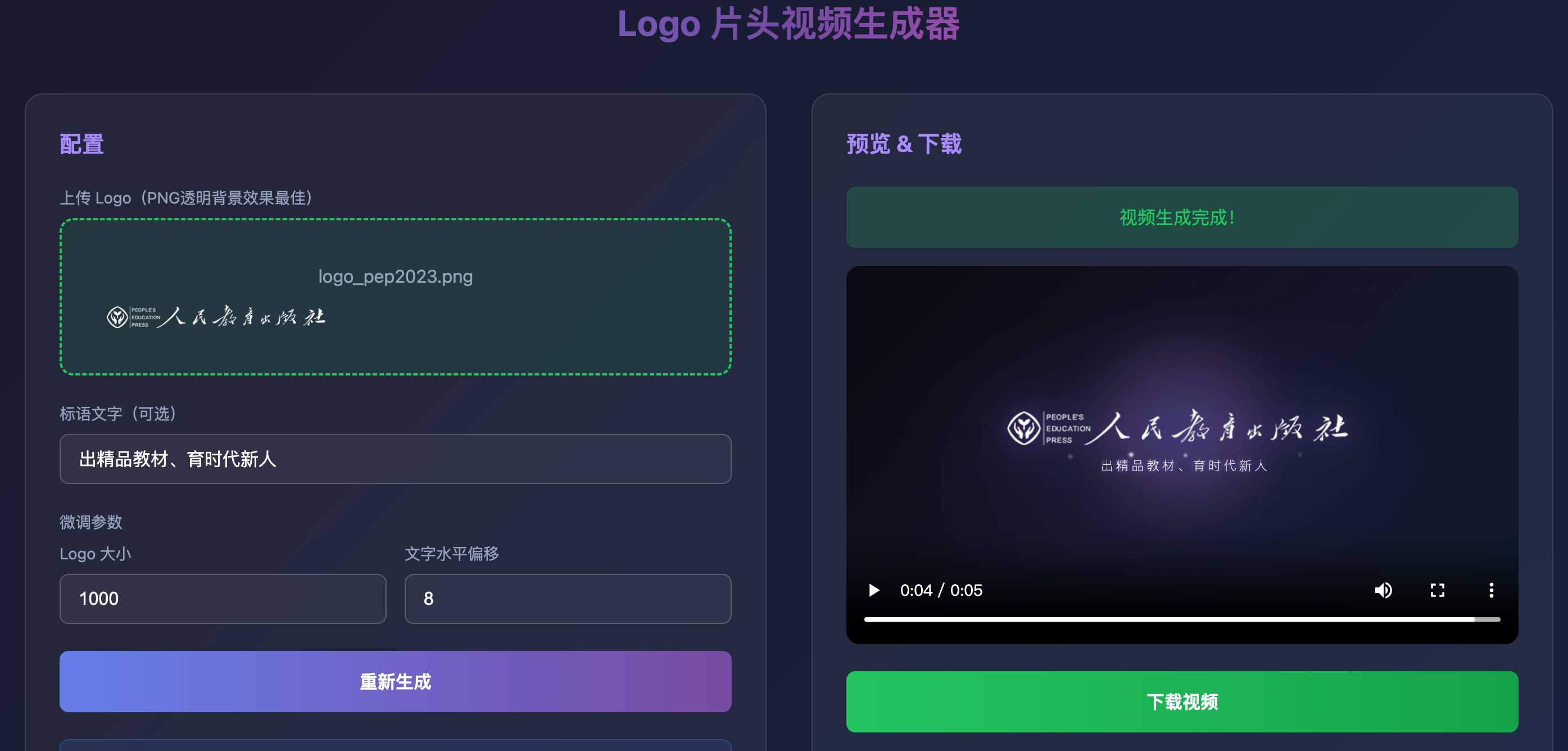 只需要传一个抠好的logo,加上一句你的slogan。几秒钟就做完一条,非常吓人。