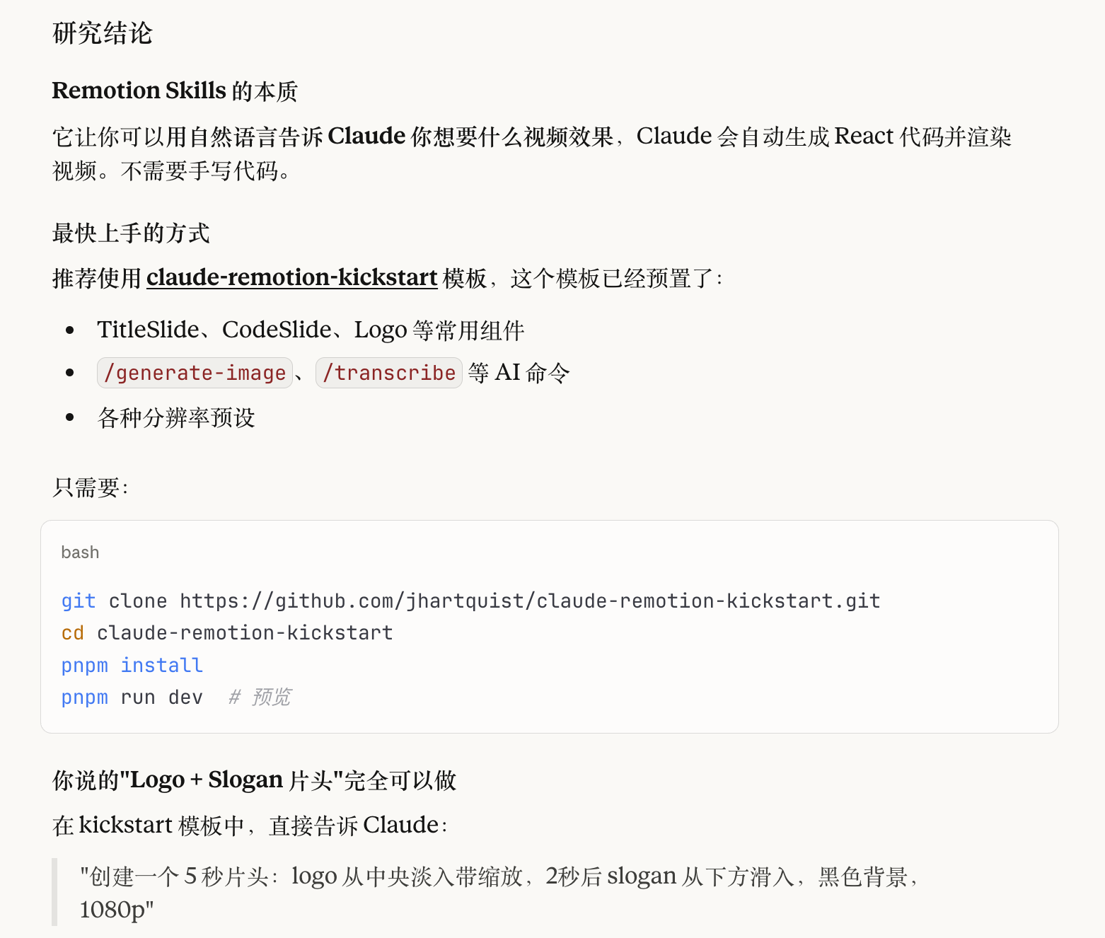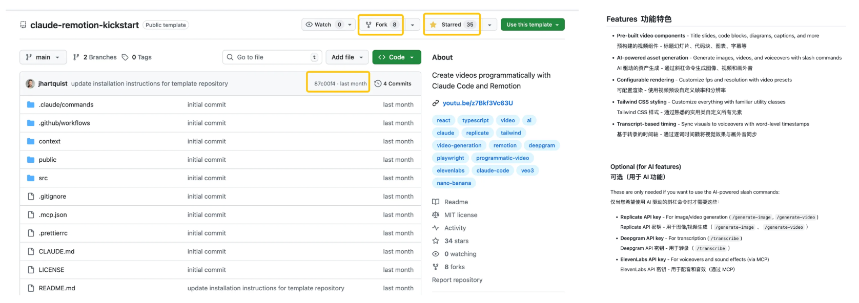 他给我推荐了一个哥们,他在GitHub上,用claude和remotion做了一个带有教程模板的版本。
