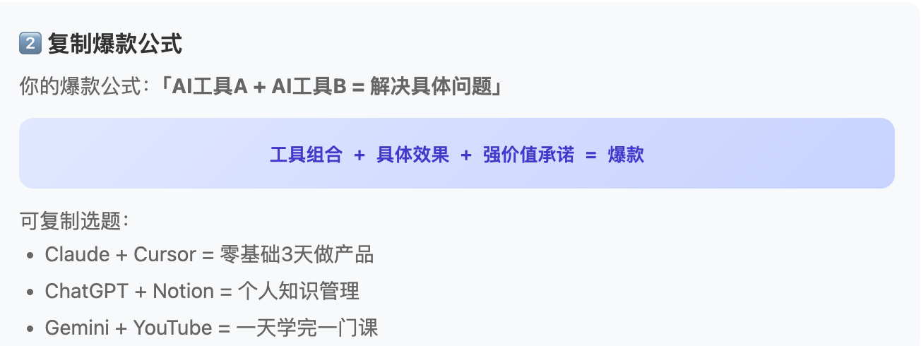 这个 「X + Y = 一个新的解决方案」爆款公式,也是AI分析让我强调的。