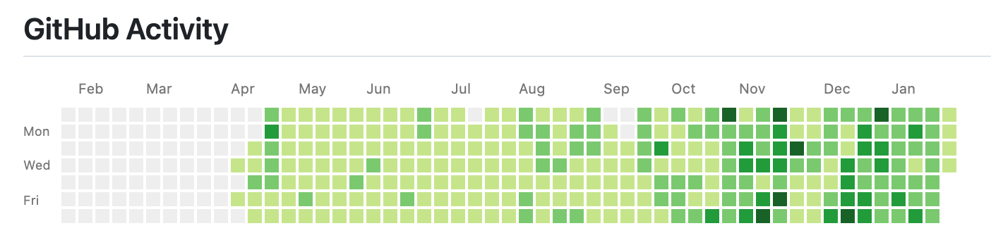 再看它的GitHub活跃时间线,从去年4月开始,大哥就是个coding疯子,越往后越疯狂。