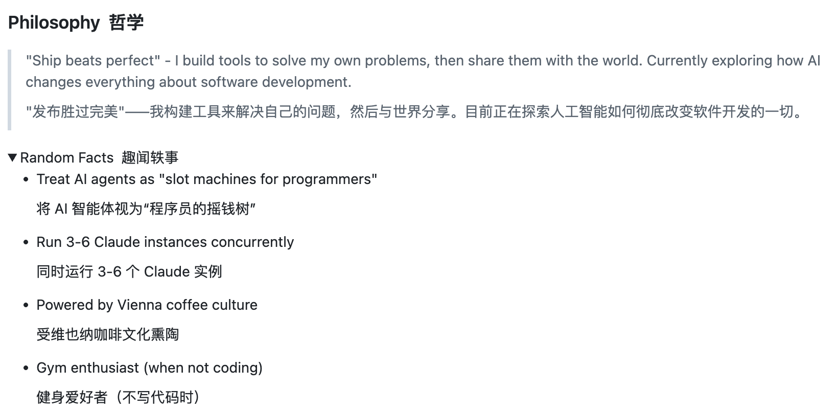 再往下翻到他的人生哲学,和自己折叠起来的趣闻轶事。