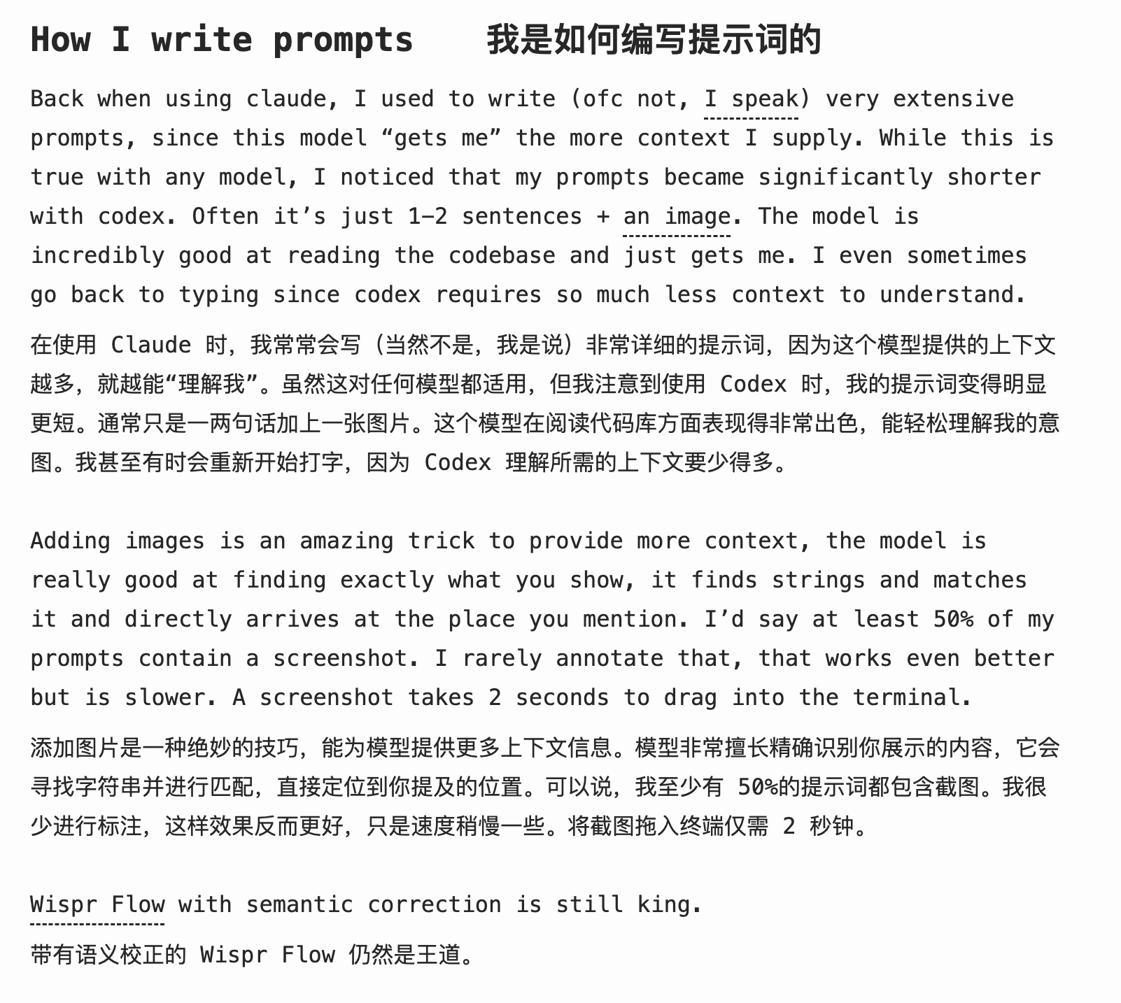 Peter说:"I'd say at least 50% of my prompts contain a screenshot." (我估计至少50%的prompt里都带截图。)