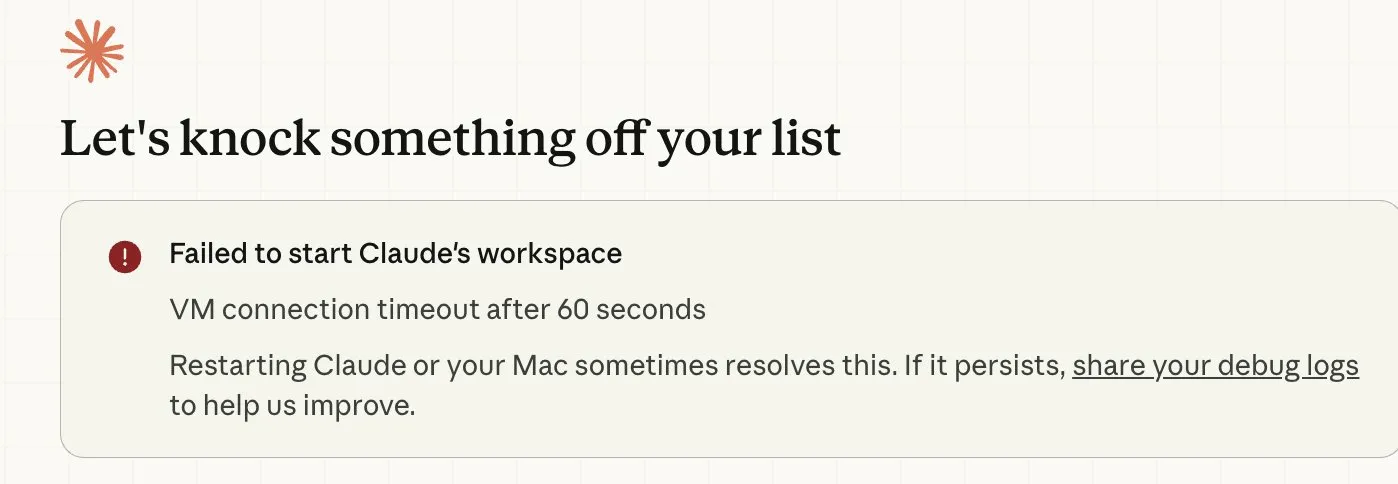 早上我来公司打开Claude Cowork,竟然莫名崩溃了。
