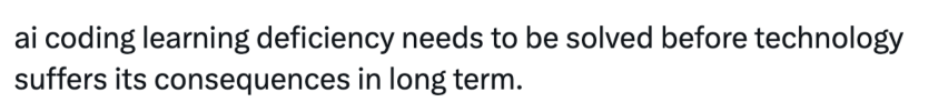这是我昨天看到的一条推特,它的意思是AI coding是乘法器,不是平衡器。