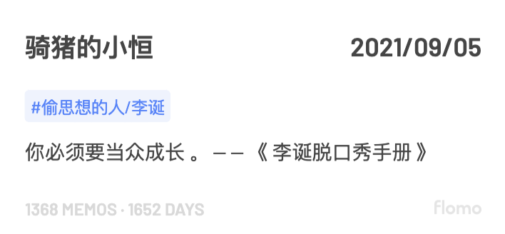 这句话2021年9月5日记在flomo上。现在这句话的变种很多了,build in public,learn in public,growth in public…